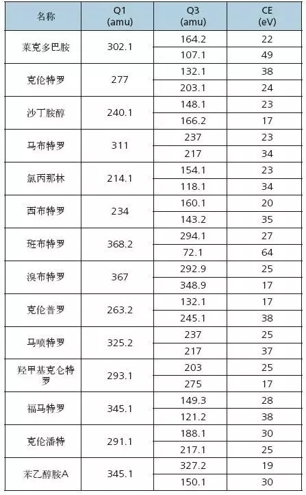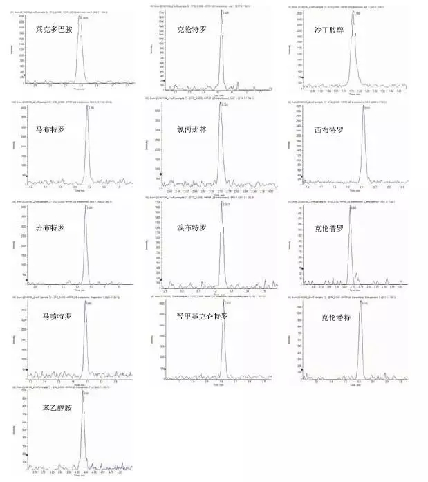 β-受體激動劑主要用于治療人、畜支氣管哮喘和支氣管痙攣。在用于畜牧飼喂時被非法用于促進動物生長,減少脂肪沉積,提高瘦肉率的作用。人類長期食用含β-受體激動劑殘留的食物可能會引起中毒,并對健康造成極大的傷害。目前,我國禁止在使用動物的飼養(yǎng)中使用。由農(nóng)業(yè)部發(fā)布的國家標準《豬尿中β-受體激動劑多殘留檢測液相色譜-串聯(lián)質(zhì)譜法(農(nóng)業(yè)部1025號公告-11-2008)》和農(nóng)業(yè)行業(yè)標準《動物尿液中11中β-受體激動劑的檢測(農(nóng)業(yè)部1063號公告-3-2008)》,對動物尿液中β-受體激動劑液相色譜-質(zhì)譜/質(zhì)譜測定方法進行了規(guī)定。