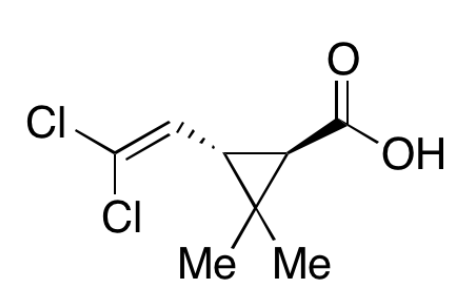 Cyclopropanecarboxylic acid, 3-(2,2-dichloroethenyl)-2,2-dimethyl-, (1R-trans)-; (1R,3S)-3-(2,2-Dichloroethenyl)-2,2-dimethylcyclopropanecarboxylic acid; (1R)-(+)-trans-Permethrinic acid; (1R)-trans-3-(2,2-Dichloro-1-ethenyl)-2,2-dimethylcyclopropanecarboxylic acid; (1R)-trans-3-(2,2-Dichloroethenyl)-2,2-dimethylcyclopropanecarboxylic acid; 1R-trans-Permethric acid; 1R-trans-Permethrinic acid