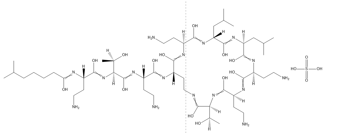 Polymyxin E2 sulfate; 1-[(2S)-4-Amino-2-[(6-methyl-1-oxoheptyl)amino]butanoic acid]-Polymyxin E1 sulfate