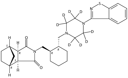 (3aR,4S,7R,7aS)-2-[[(1R,2R)-2-[[4-(1,2-Benzisothiazol-3-yl)-1-piperazinyl-2,2,3,3,5,5,6,6-d8]methyl]cyclohexyl]methyl]hexahydro-4,7-methano-1H-isoindole-1,3(2H)-dione; 4,7-Methano-1H-isoindole-1,3(2H)-dione, 2-[[(1R,2R)-2-[[4-(1,2-benzisothiazol-3-yl)-1-piperazinyl-2,2,3,3,5,5,6,6-d8]methyl]cyclohexyl]methyl]hexahydro-, (3aR,4S,7R,7aS)-