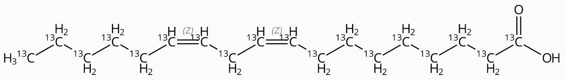 9,12-Octadecadienoic-1,2,3,4,5,6,7,8,9,10,11,12,13,14,15,16,17,18-13C18 acid, (9Z,12Z)-; (9Z,12Z)-9,12-Octadecadienoic-1,2,3,4,5,6,7,8,9,10,11,12,13,14,15,16,17,18-13C18 acid |
